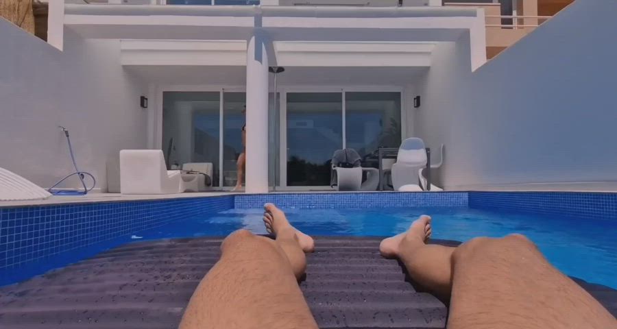 Enjoying the sun next to the pool