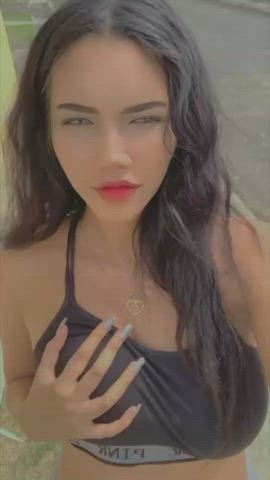 I just couldn't resist getting my tits out in front of my neighbours house I hope no one saw me hihi [f]
